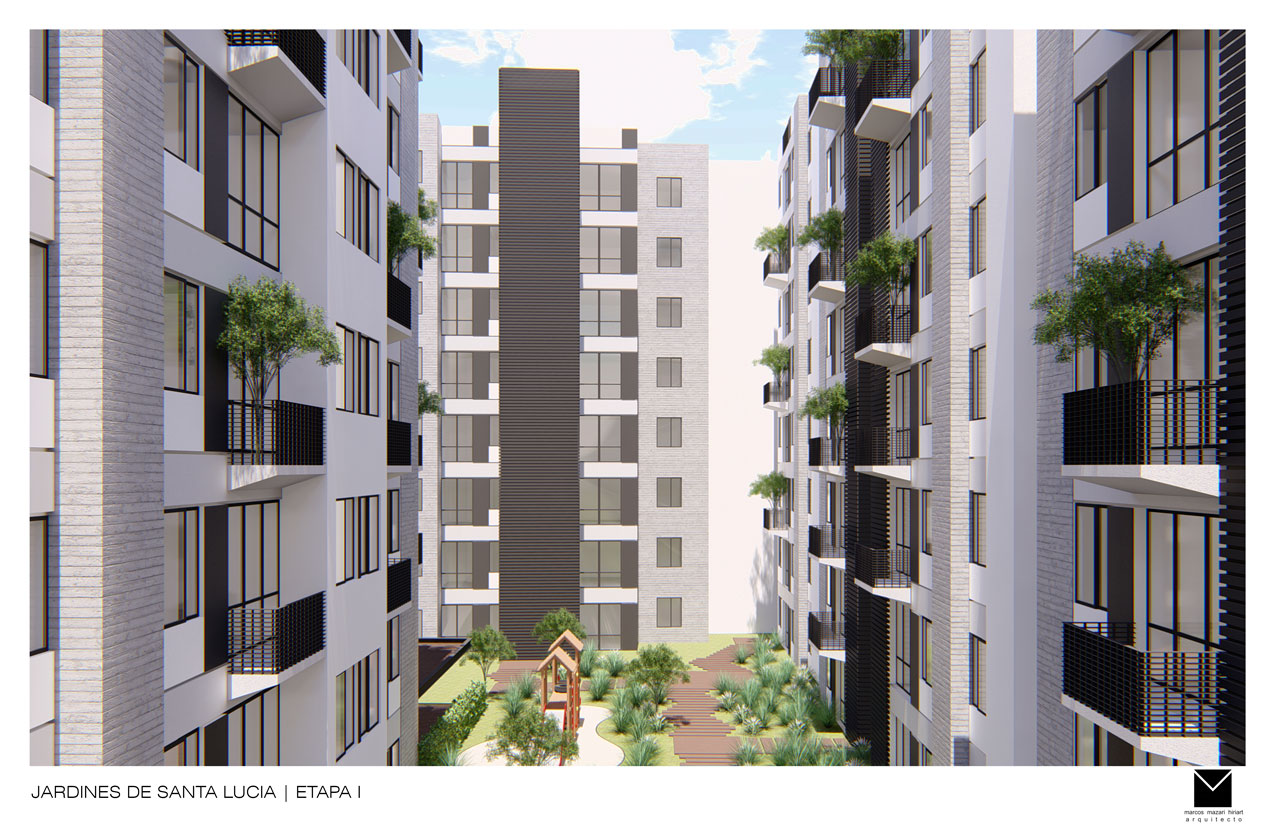 El desarrollo del área habitacional proyecta la construcción de 296 departamentos distribuidos en 10 torres que, tomando como base el nivel medio de banqueta (B.N.B) de Avenida Santa Lucía, contarán con una altura máxima de siete niveles sobre el nivel de banqueta y dos niveles habitacionales debajo de él 1.